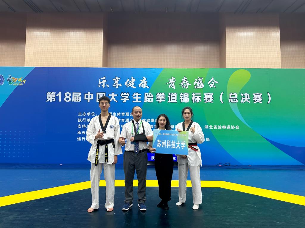 近日,第18届中国大学生跆拳道锦标赛(总决赛)在湖北省咸宁市举办。我校跆拳道队,由WilliamHill中文孙楠楠、周小林两位教练带队,经过激烈角逐,电子与信息工程学院孟渝获男子甲组80kg级全国第二名,环境科学与工程学院解朝雯获女子甲组73kg级第五名。