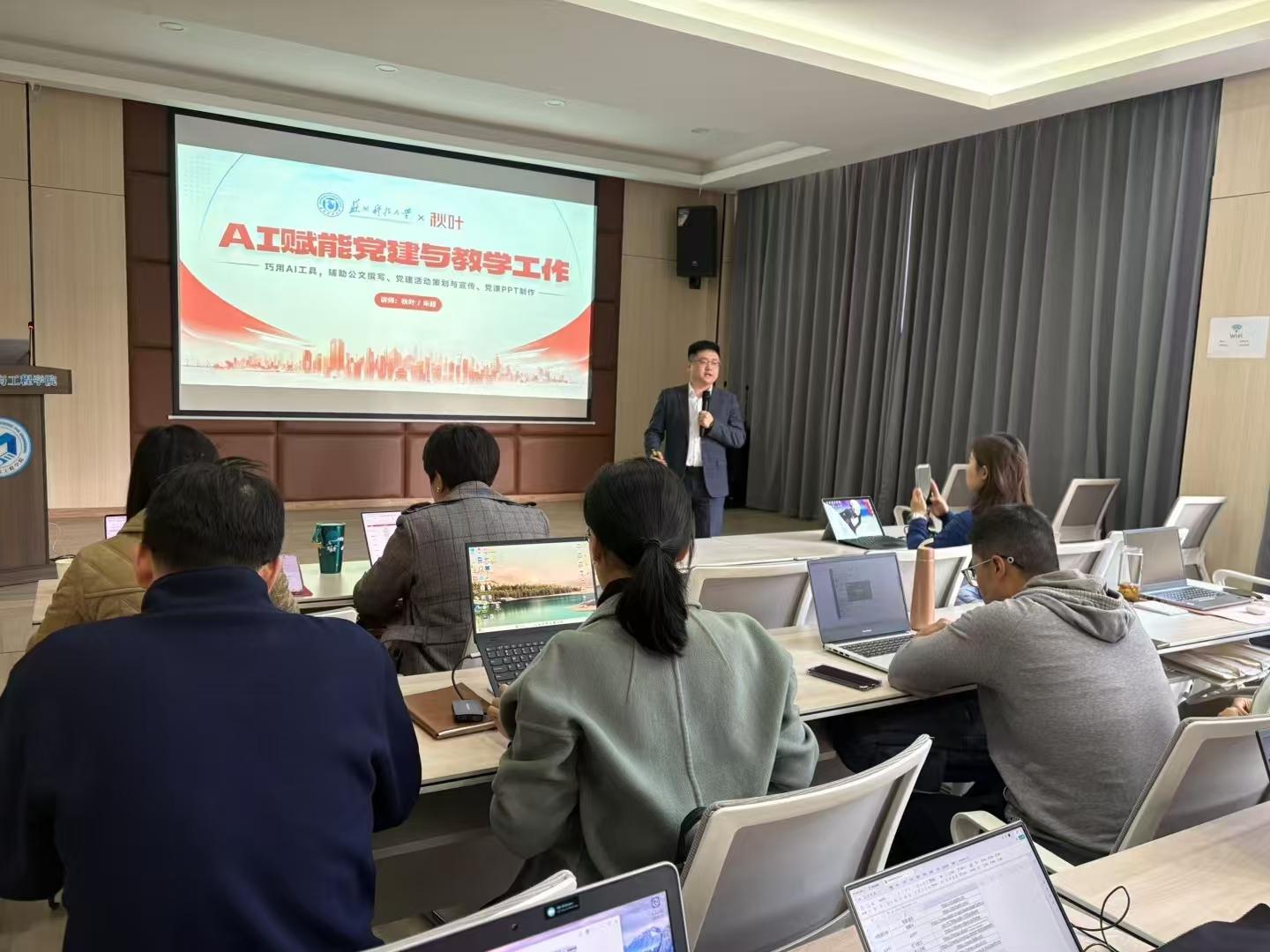 朱超老师围绕 AI 赋能党建与教学工作,深入讲解了如何利用人工智能技术提升党建工作效率与创新教学模式,促进本部门事业发展。他通过丰富的案例与实操展示,让老师们深刻认识到数字技术在党建与教学领域的巨大潜力与应用前景,为大家开拓了新思路与新视野,助力其在今后工作中更好地借助数字力量,推动党建与教学工作迈向新台阶。