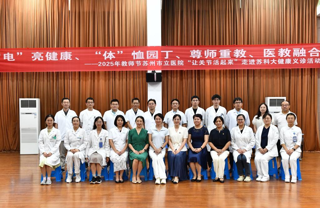 9月16日,我校在石湖校区教工之家举办“电”亮健康、 “体”恤园丁、尊师重教、医教融合——2025年教师节苏州市立医院走进苏科大健康义诊活动。来自苏州市立医院骨科、眼科、心血管科、呼吸科、中医科、消化科等17个科室20余名专家走进校园,为广大教职工“在家门口”提供优质的健康服务。