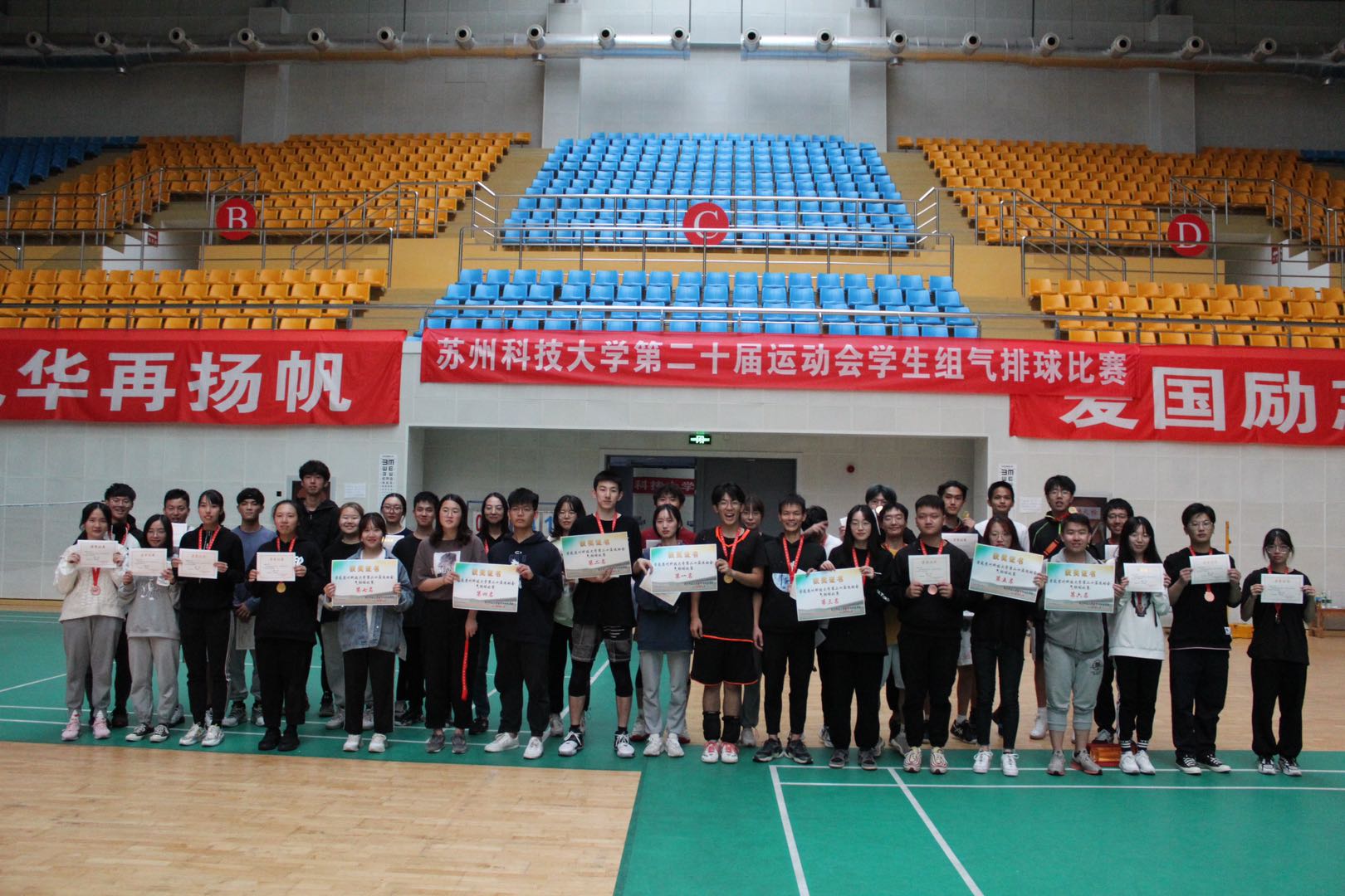 气排球比赛由商学院摘得冠军,国际教育学院获得亚军,天平学院一队获得第三名,天平学院二队、化学与生命科学学院、地理科学与测绘工程学院、数学科学学院和土木工程学院分获四至八名。