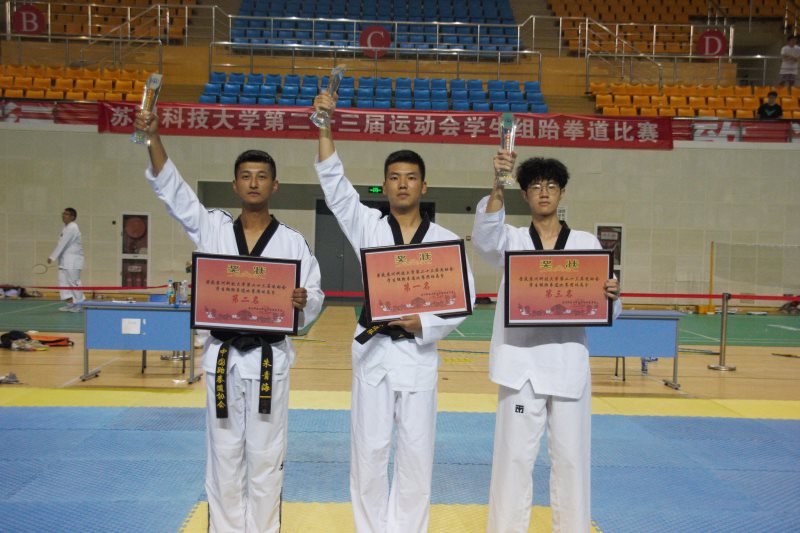 10月11日晚校运会学生组跆拳道比赛拉开帷幕,59名运动员角逐三个大项共14个小项的比赛,比赛中运动员勇往直前、奋力拼搏,不畏艰险发扬了苏科大跆拳道精神。最终天平学院二队获得团体冠军,天平学院一队获得团体亚军,机械工程学院获得团体季军,土木工程学院、建筑与城市规划学院、环境科学与工程学院、教育学院和商学院分获团体四至八名。