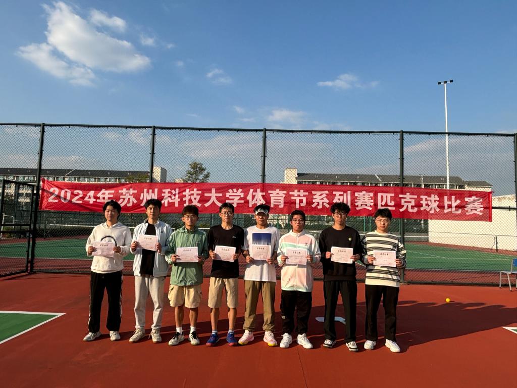 在网球单打赛中,机械工程学院刘一诺获得冠军,化学与生命科学学院钱益获得亚军,土木工程学院孙晓鹏获得季军。