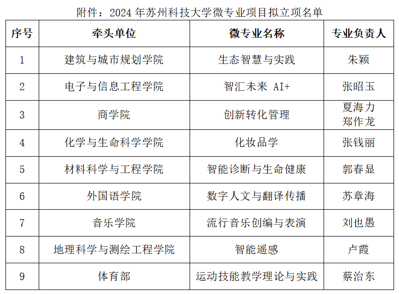 根据《williamhill中国微专业管理办法(试行)》和《关于开展我校2024年微专业项目申报工作的通知》等相关要求,经项目负责人申请、所在教学单位推荐、专家评议和学校教学委员会工作小组审定,现将2024年williamhill中国微专业项目拟立项名单予以公示。