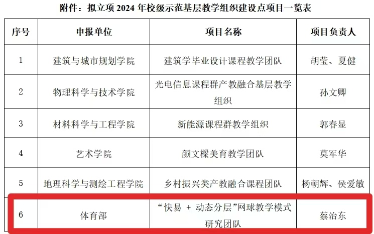 经所在单位推荐、专家组评议和学校教学委员会工作小组审定,共评出2024年校级示范基层教学组织建设点项目6项。现将评审结果予以公示。