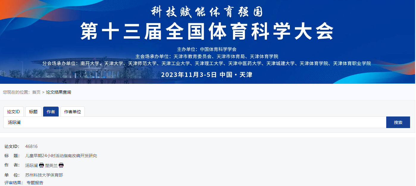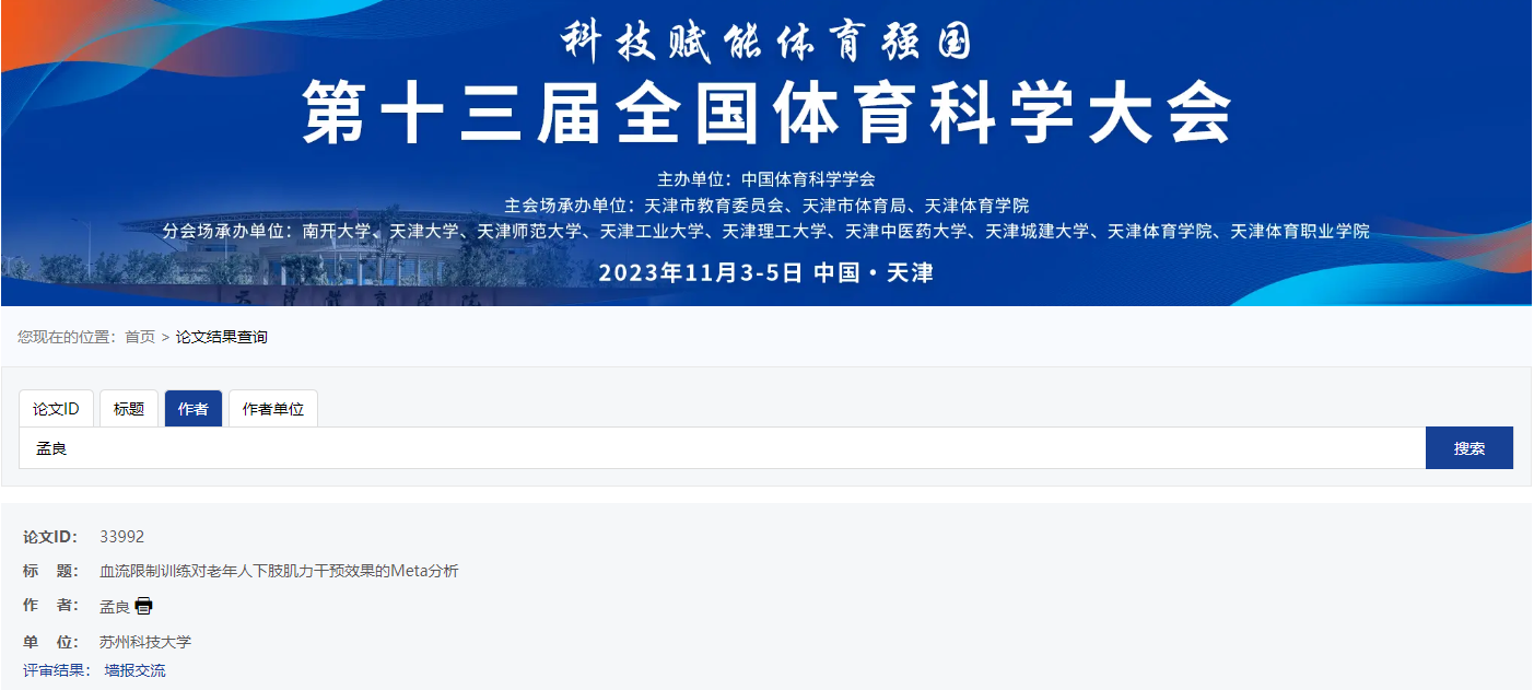 第十三届全国体育科学大会将于2023年11月3-5日在天津举办,大会主题:科技赋能体育强国。本届大会将坚持高层次、高水平、高质量的办会标准,秉承学术信息交流,推动体育理论创新,回应体育实践需求,促进体育科技成果转化的办会宗旨,努力实现为加快推进体育强国建设提供智力支持和科技支撑的办会目标。为了更充分地满足广大体育科技工作者进行学术交流、展示科技成果的实际需求,本届大会将采取“主会场+分会场”的形式举办。