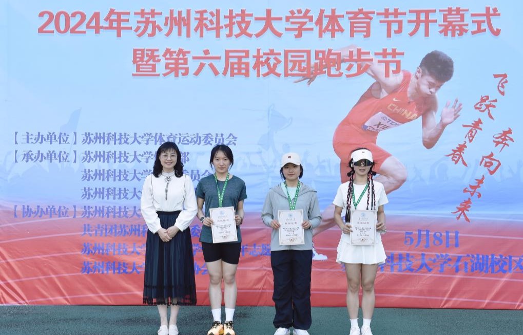 5月8日喜迎校庆日之际,我校在石湖校区举办“2024年体育节开幕式暨第六届校园跑步节”活动。活动以“喜迎校庆、飞跃青春、奔向未来”为主题,全校共有300余名师生参加。
