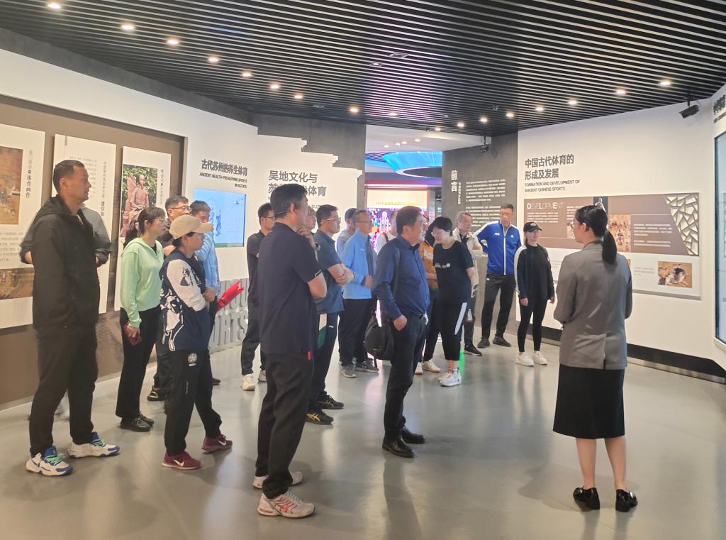 在工作人员的带领下,老师们参观苏州体育博物馆,沉浸式重温苏州体育的辉煌历史。老师们向我国田径名将,江苏奥运第一人程金冠(原苏州铁道师范学院、铁师附中体育教师)致敬,学习了程金冠代表中国征战柏林奥运会,彰显民族气节的光荣事迹。此外,博物馆也展出了速度轮滑世锦赛、世界杯、世界运动会大满贯获得者,现任苏科大WilliamHill中文教师郭丹为国争光的夺冠事迹。大家倍感振奋、深受鼓舞纷纷表示,将以榜样的力量激励前行,筑牢信仰根基,书写体育育人新篇章,为学校体育事业、教育事业高质量发展贡献力量。